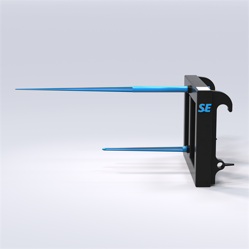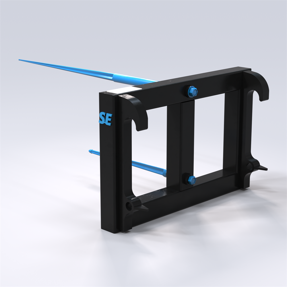 SE Equipment offers a bale spear for tractors with an SMS coupling, the ideal equipment for efficient handling of unwrapped round bales. With its strategically positioned spears (top and bottom), you get equipment that is both stable and durable, designed to provide safe and long-lasting performance for many years.