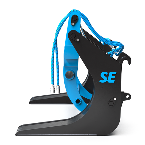 Förenkla virkeshanteringen med vår robusta Euro timmergrip från SE Equipment. Detta maskinredskap är särskilt designat för att hantera buskar, ved och timmer på ett enkelt och säkert sätt. Med sin kraftfulla konstruktion och dubbla hydraulcylindrar klarar timmergripen även långa stockar med en kapacitet på upp till 2500 kg.